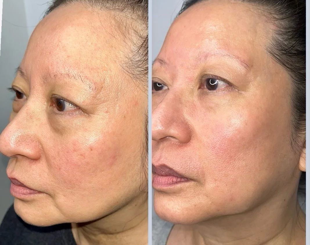 This innovative technology is aimed at lifting and tightening tissue. Known as the non-surgical eyelid lift or lip flip, the plasma treatment uses an electrical arc to the skin giving an immediate tightening effect to the surrounding skin. Areas suitable for treatment include upper and lower eyelids, upper lip, chin, nasolabial folds, jowls/jawline, crow’s feet, tear troughs, necklines, scars, loose skin, and forehead lines. Depending on the area, swelling varies. Full results are seen after 12 weeks.